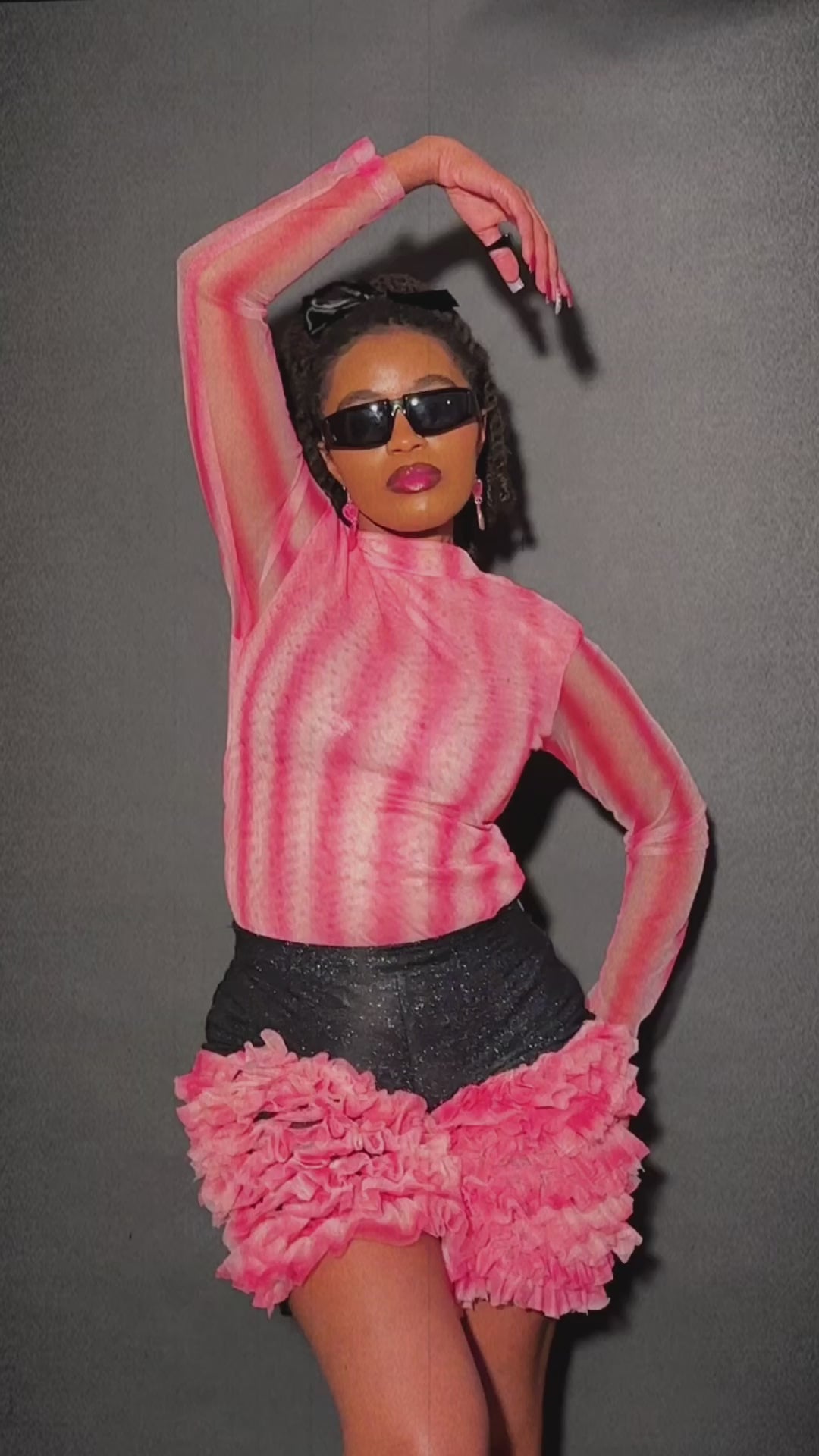 This Blush Fever Set is a perfect blend of comfort and style. It features a top with long sheer sleeves which add a touch of femininity, while the ruffled shorts create a playful and flirty vibe. The high neckline adds a touch of sophistication, making it perfect for both casual outings and special occasions. The mini length shows off your legs and completes the look with a touch of sexiness.