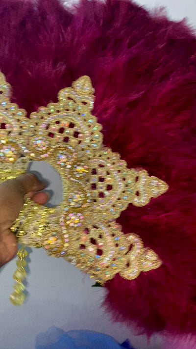 Hand fans can be made in your color choice; you can send us a picture of your outfit and we would make a matching fan for you.