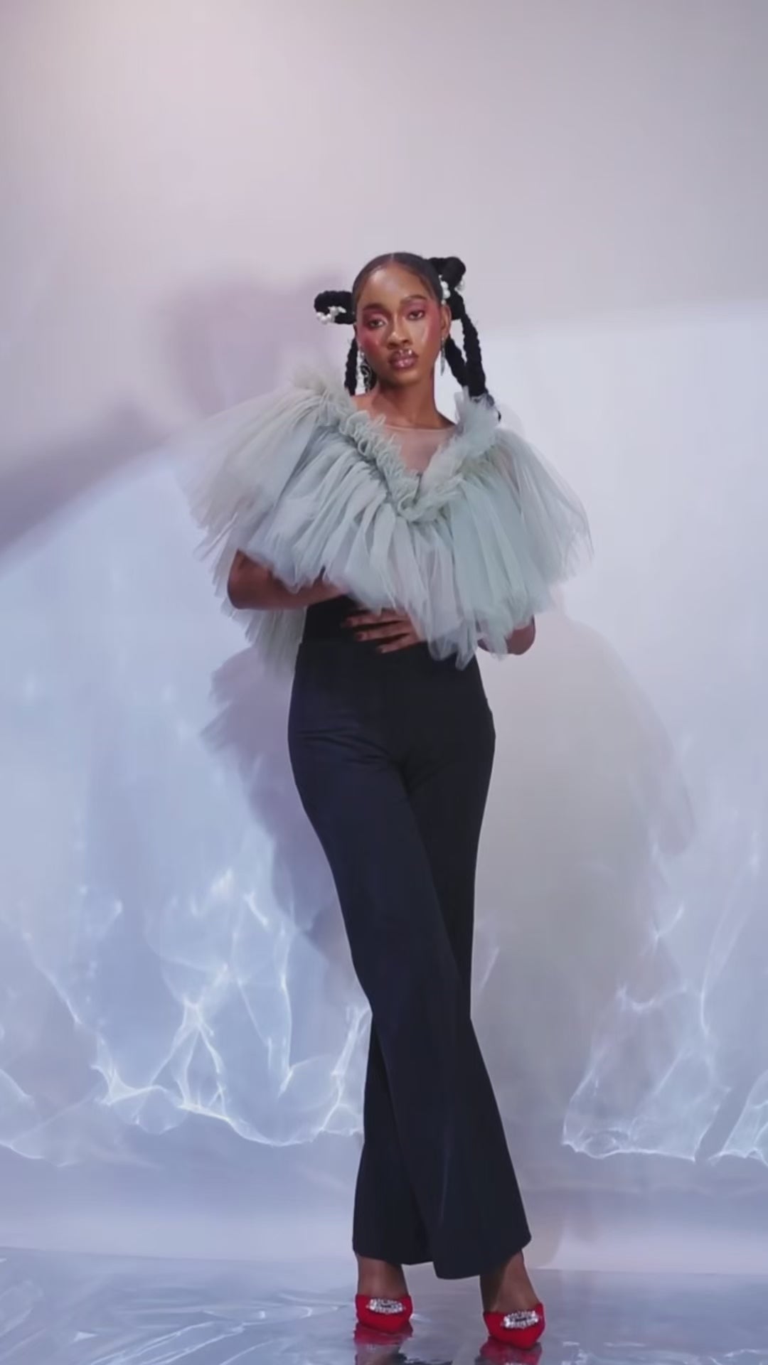 •Sheer deep plunge neck butterfly 🦋 inspired top