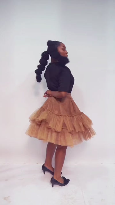 The Estelle mini ruffled skirt features an elastic waist band, functional side pockets, two layers of tulle fabric ruffle designs.