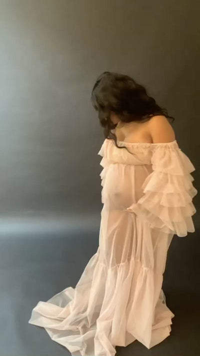 Designed to offer both style and comfort for expecting mothers. This elegant dress features a flowing, full-length silhouette that gracefully accommodates your growing baby bump. Crafted from a soft, breathable fabric, it ensures all-day comfort while maintaining a chic look.