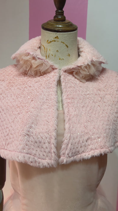 This set includes a stunning faux fur cape and a beautifully crafted dress, both designed for separate wear.