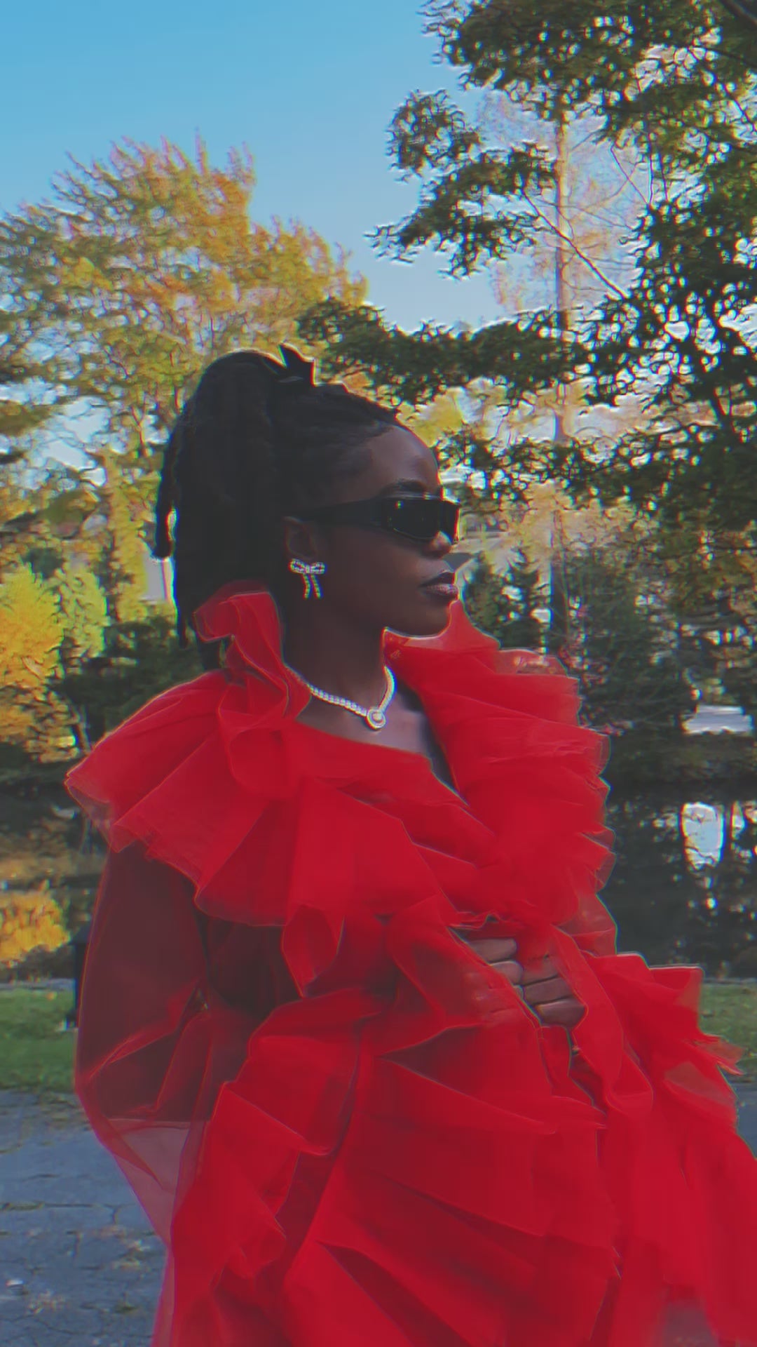 In layers of soft tulle and pleating, this dress is made for the fashionista who's ready to make a statement
