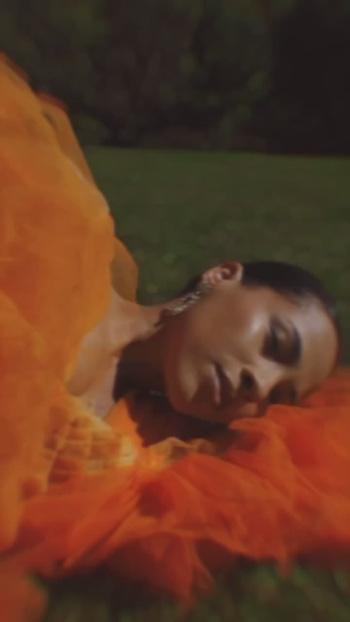 - Radiant Sunset Hue: The Pavilion Dress is bathed in a golden-orange glow, evoking the splendor of a setting sun. This rich, vibrant tone captures the essence of warmth, vitality, and glamour.