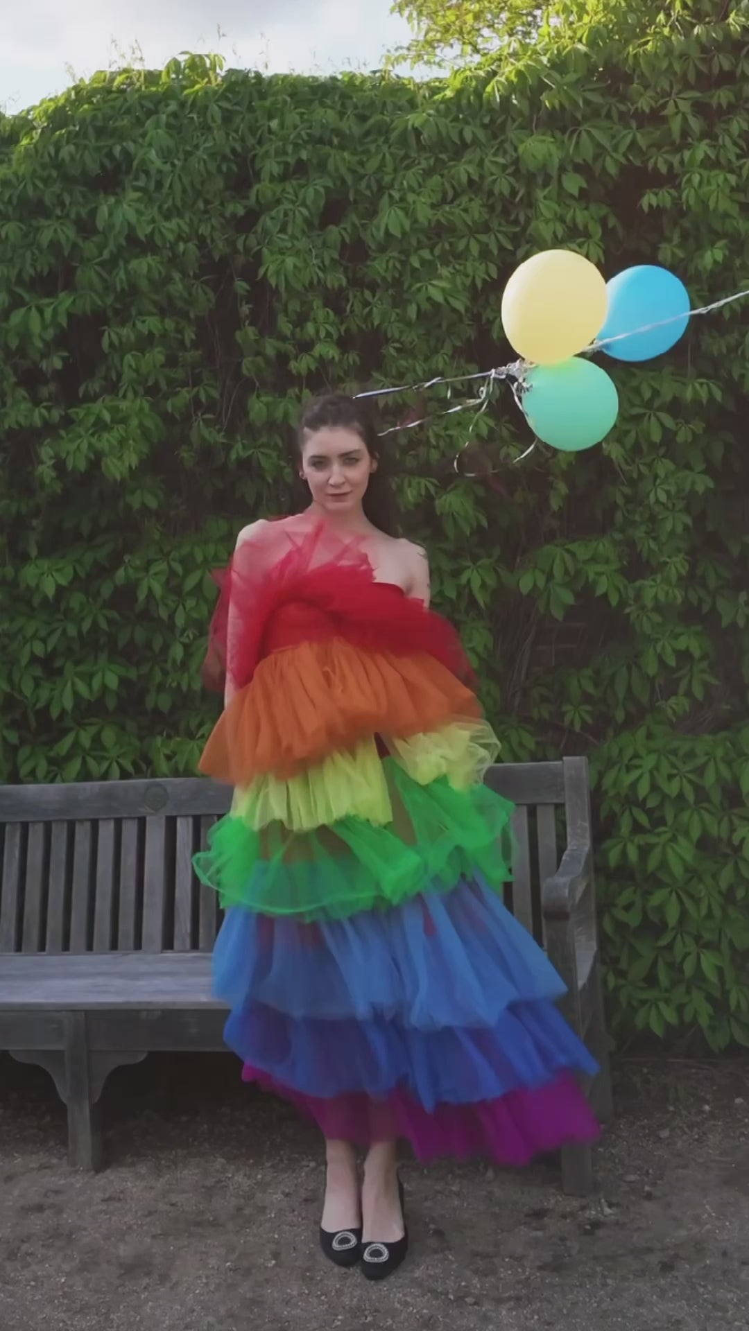 The Rainbow Dreams Dress is a vibrant and playful dress featuring a burst of color that will brighten up any outfit. Crafted from layers of soft, flowing tulle, it features a stunning rainbow gradient that transitions seamlessly from red to violet. The multiple layers create a voluminous and dramatic effect, perfect for special occasions or everyday wear. Whether you're attending a festival, a party, or simply want to add a touch of fun to your wardrobe, the Rainbow Dreams Dress is the perfect choice. Pair with a pastel, denim or leather jacket, and match with heels, boots or sneakers.
