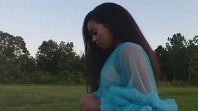 Made from soft premium tulle fabric, this robe features beautifully arranged ruffles, bell sleeves, an elastic waistband, hook and eye closure with minimal train and a detachable bow. Perfect for maternity shoots, birthdays shoots, bridal showers and even just lounging around the house.