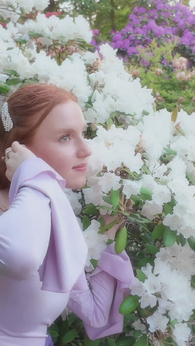 Soft, romantic, and made to turn heads. The Eliza Dress features a ruched lilac base with a one-shoulder neckline and whimsical tulle ruffles that trail like petals in the breeze. Perfect for garden parties, picnics, or any moment that calls for a little magic.