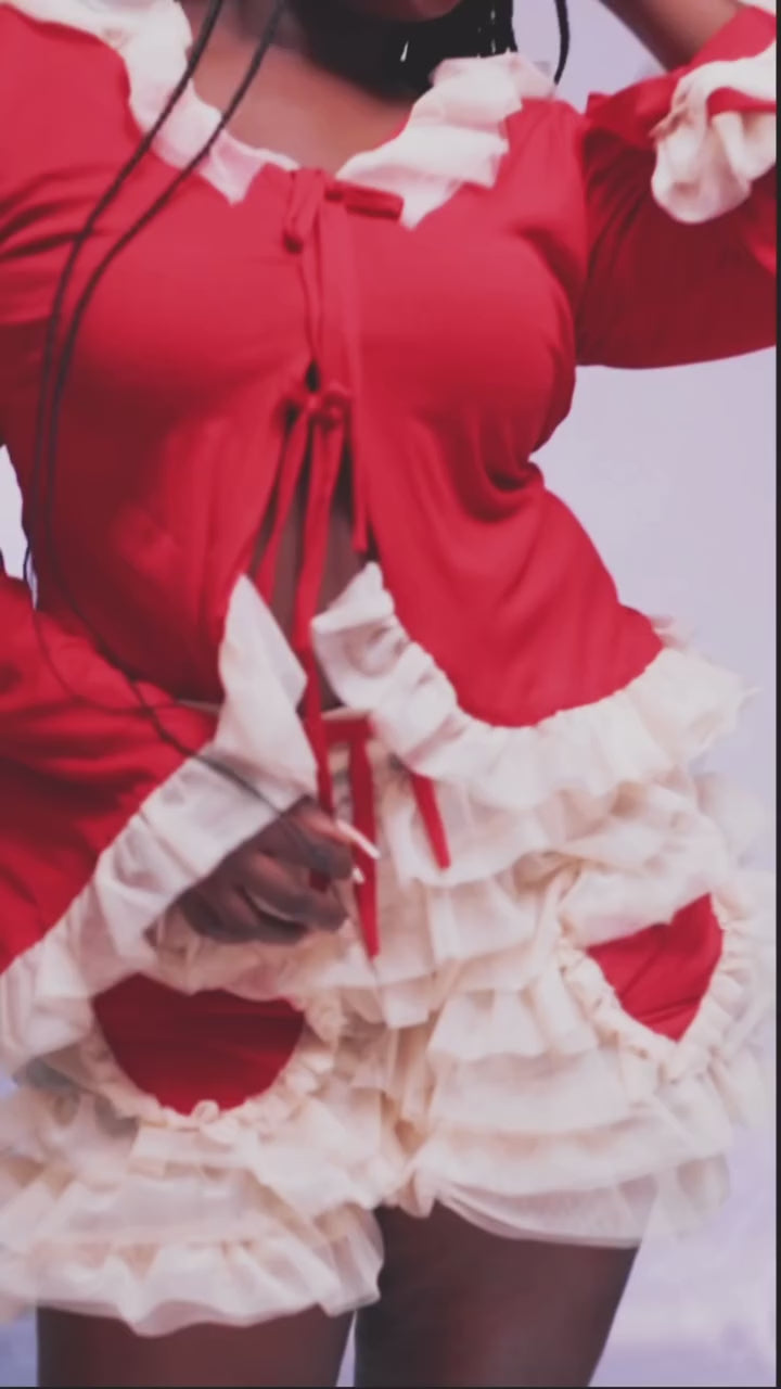 Sweet, playful, and full of charm—the Strawberry Shortcake Set is a love letter to vintage romance with a modern twist. The ruffled lace trim, delicate bows, and soft, flowy silhouette make this set perfect for lounging in style or making a statement wherever you go. The fitted tie-front top pairs effortlessly with the ruffled shorts, creating a dreamy, flirty look that feels as good as it looks.