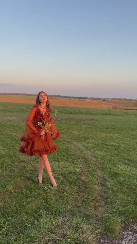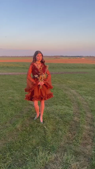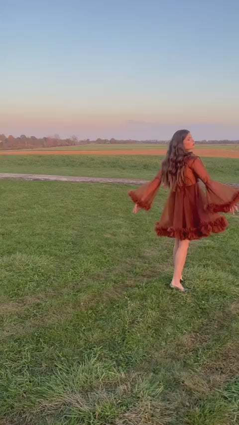 Indulge in the enchanting allure of our "Cinnamon Spice Tulle Elegance dress.