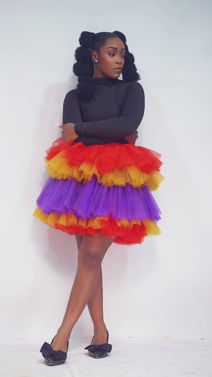 Turn heads and twirl in style with the Tutu Tango Skirt! This playful, multi-layered tulle skirt bursts with bold orange, yellow, and purple hues—perfect for statement-making moments. Lightweight, voluminous, and ultra-fun, it features an elastic waistband for a comfy fit. Whether you’re dressing up or keeping it casual, this skirt brings the drama in the best way!
